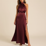 • Design : Élégante robe longue sans manches avec col montant, offrant un style chic et sophistiqué.